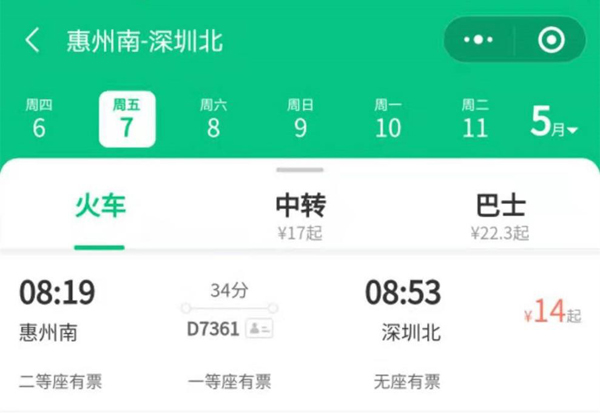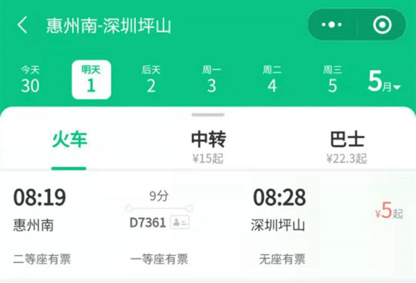 从惠阳雅居乐花园出门,在车上大概听3首歌的时间就可以到达惠州南站,乘坐厦深高铁,实现一站到深圳!到深圳坪山5元起,到深圳北站14元起。(信息来源:微信火车票预订)