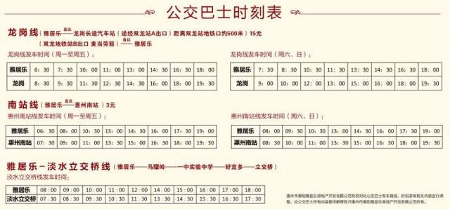 目前,项目已引进南站线、龙岗线、约场线三线社区巴士。从项目可以坐公交直达惠州南站,票价单程3元。