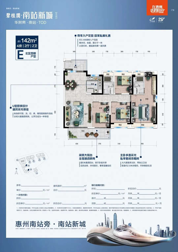目前,项目主推建面85-142㎡户型。产品交付采用碧桂园4.0人性化精装体系,装标为国际国内一线品牌,采用安心家智能门锁、蓝气球卫浴智能马桶、智能感应镜柜等智能家居。
