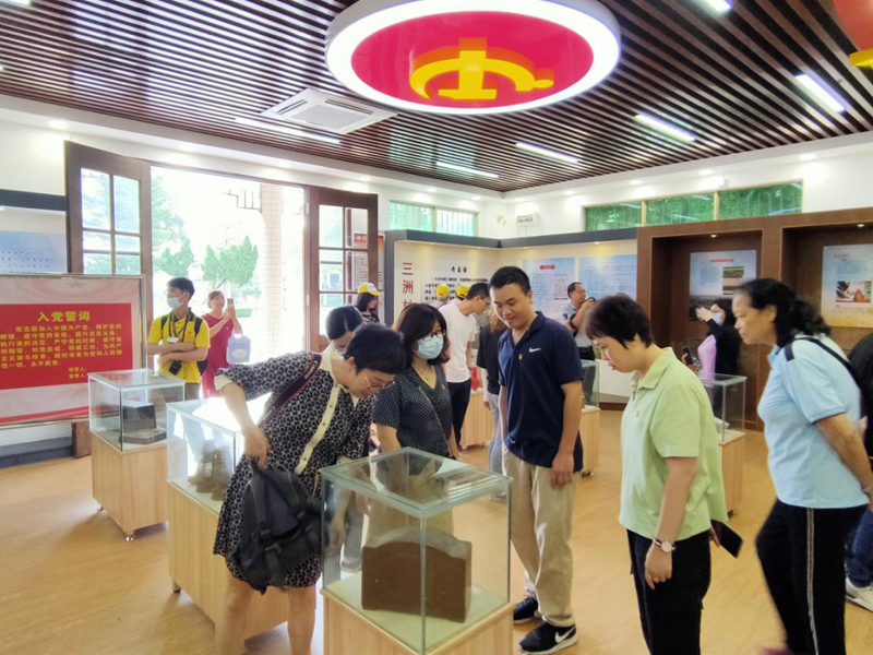 在大巴上,德和社区党委书记郭舜君同志带领大家回忆中国共产党带领人民从站起来到富起来、强起来的卓越奋斗历程,勉励党员同志在建党100周年之际,通过学党史深刻领悟党为人民谋福祉,为民族谋复兴的精神。在伦教三洲党员教育基地,党员们先后参观了梁棉旧居、抗日烈士纪念碑和三洲村史馆,每到一处,仔细听取了梁棉为代表的顺德抗日游击队在乌洲一带的英勇事迹。在三洲抗日烈士纪念碑前党员们驻足瞻仰,共同缅怀革命先烈。“一份份红色档案就是一幅幅奋斗画卷,发人深省、催人奋进”,党员干部纷纷表示,此次活动既是一次红色记忆的传承,又是一场革命精神的洗礼。