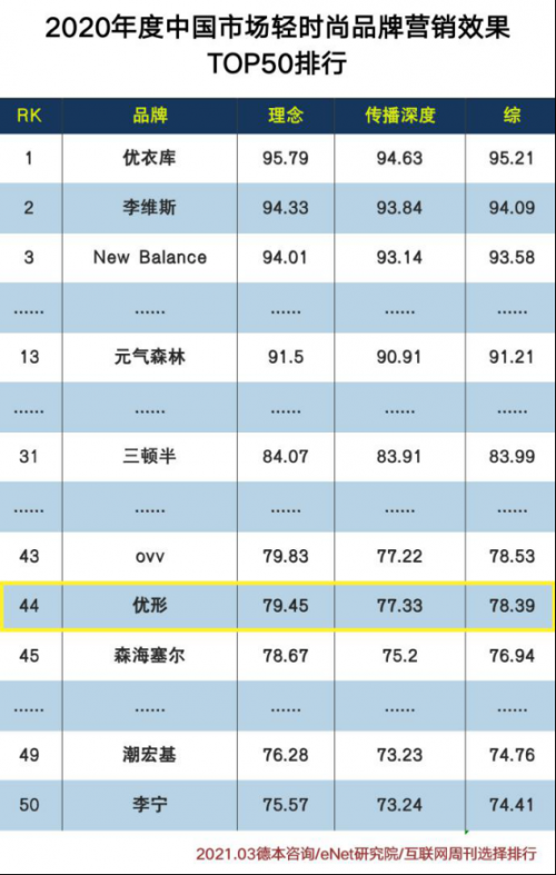 日前,中国社科院《互联网周刊》、德本咨询和eNet研究院联合发布了“2020年度轻时尚品牌”榜单。凭借突破性的技术创新、新消费业态下的赛道开拓以及独特的品牌运营思路,凤祥股份旗下轻食品牌优形,与优衣库、元气森林等共同入选该榜单TOP50。值得一提的是,优形也是本次唯一上榜的轻食消费品牌。