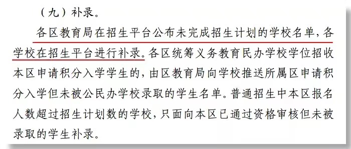 2021年各区教育局会在招生平台公布未完成招生计划的学校名单,各学校在招生平台进行补录。与去年不同,普通招生中本区报名人数超过招生计划数的学校,只面向本区已通过资格审核但未被录取的学生补录。