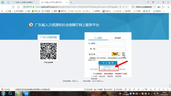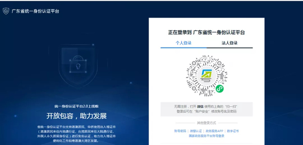 未注册的用户可以在注册后再登录,或者选择其他登录方式,例如点击“广东省统一身份认证平台”,然后使用手机微信扫描跳转页面中出现的小程序码,按照手机页面指引刷脸认证,即可免注册登录。