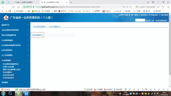 领取失业保险金的人员在左边侧边栏选择“失业待遇 -> 失业待遇终止”,再点击“失业待遇终止”按钮;领取失业补助金的人员在左边侧边栏选择“失业待遇-> 失业补助金停发”,再点击“失业补助金停发”按钮。然后,点击“受理”按钮,根据页面指引填写资料和提交业务。