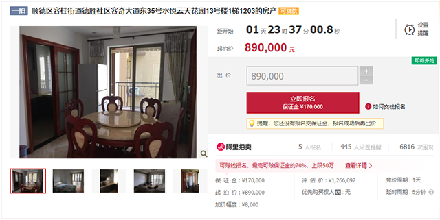 参与方式:在淘宝搜索【司法拍卖】,点击按【法院查询】搜索【佛山市顺德区人民法院】查看拍卖品信息。