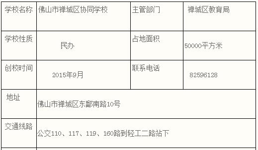 佛山市禅城区协同学校创办于2015年9月,位于佛山市中心城区纵横中轴线佛山大道和季华路交汇处,交通便利。学校由佛山市实验学校教育集团管理运营,秉承“协性同心、和人济世”的办学理念和“卓越、创新、幸福”的校训,致力于培养“走向世界,引领未来的精英人才”,是一所国际化、特色化、精英化的学校。