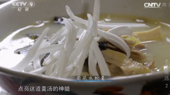菊花是太史蛇羹佐料中的主角。据传太史第内终年雇佣四个花王,其中两个专事种菊。