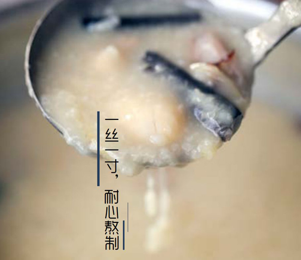 鲜甜的粥水在齿间游离,浓郁的鲜甜味与淡淡的咸香味,随着汁水顺滑入喉,令人沉醉。