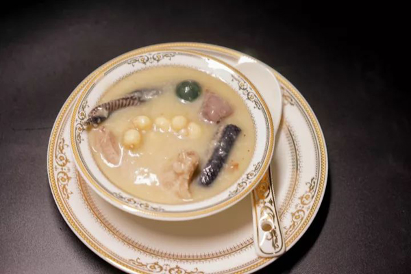在白粥中加入新鲜处理好的蛇肉、蛇皮等,然后加入红枣等配料,精心细炖,味道非常鲜甜。