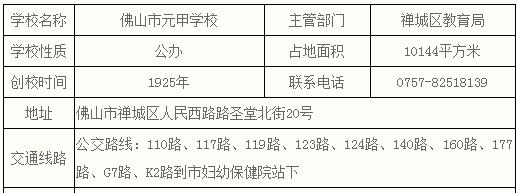 佛山市元甲学校由佛山市精武会于1925年秋创办,为纪念爱国武术家霍元甲先生,弘扬中华民族气节,造就强国栋梁英才,故以“元甲”命名。