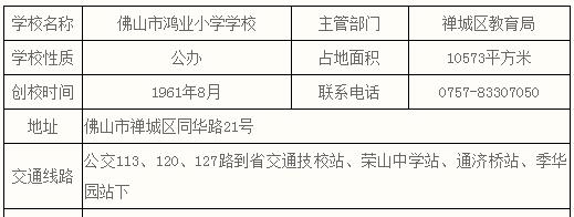 在喧闹的都市中,有一个充满生命活力的快乐天地,这就是佛山市鸿业小学。学校是由“佛山市鸿业房地产开发总公司”1991年投资创办的一所公办小学。学校占地面积10573㎡,建筑面积5059㎡。学校现有24个教学班,教师56人,学生1059人。