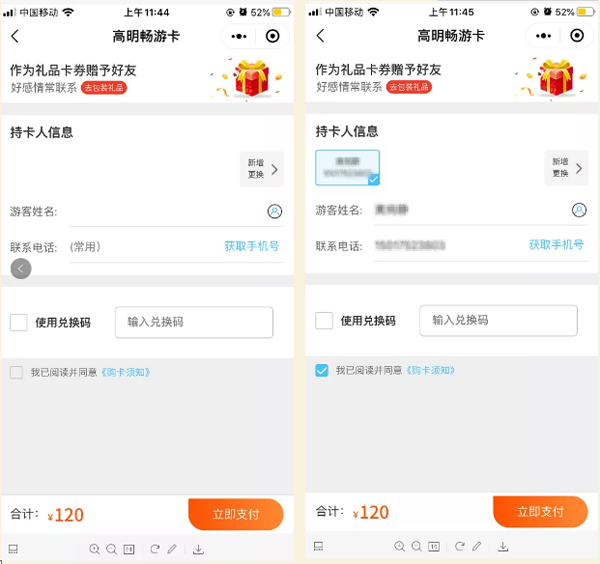 (一)畅游卡价格为120元/套,一个ID仅限认证一张。