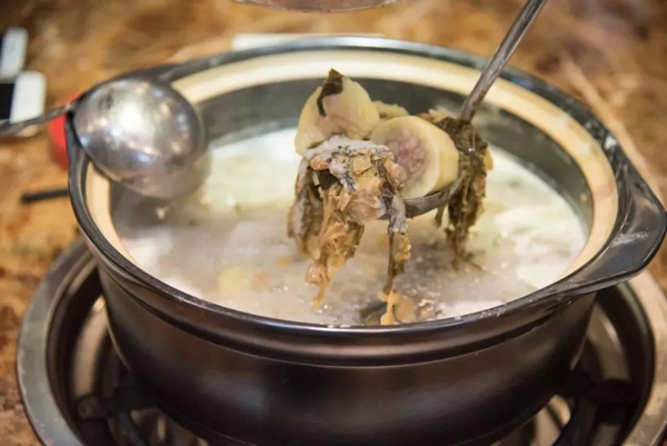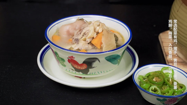 食用时,三水人常选新鲜的鸡肉、猪手、黄豆、生姜、番薯、鸡脚、梅菜作配菜,看似“混搭”,却因熬出的醋汤鲜甜美味,让很多人一试难忘。岭南湿热的夏季,喝上一碗,健脾开胃,消解暑气,滋补生津,酸咸香辣的味道在味蕾中回转,不仅有一种令人难忘的独特味道,更有益于人的身体健康。