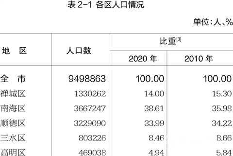 五区均实现人口正增长,顺德、南海两区人口均超三百万