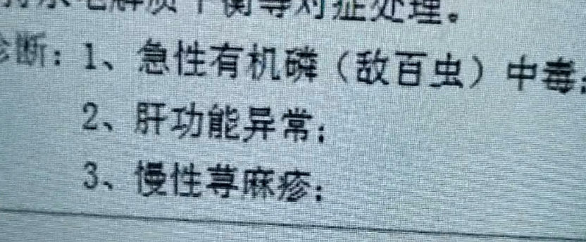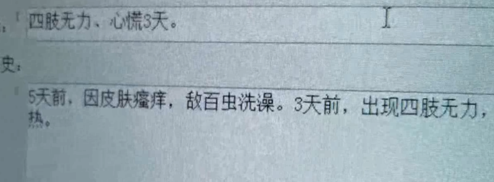 医生:他和我握手之后我感觉手有一股强烈的味道,说是皮肤瘙痒所以用农药泡水,因为父母小时候都这样,他这是属于慢性中毒。