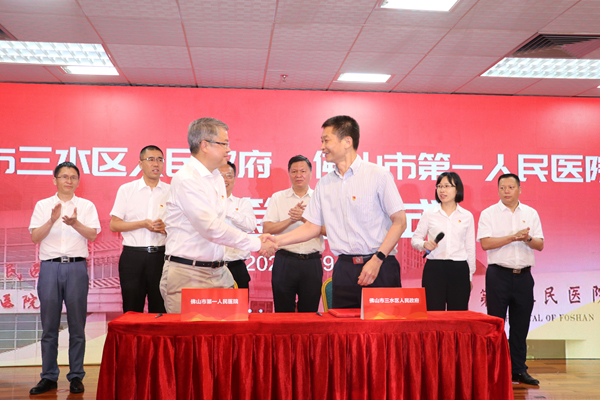 佛山市卫生健康局局长王政、佛山市第一人民医院党委书记刘永耀、佛山市第一人民医院院长陈国强、三水区委书记胡学骏、三水区副区长黄立宝等出席了签约仪式。