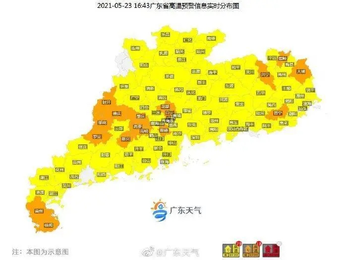 目前全省97个高温预警持续生效中