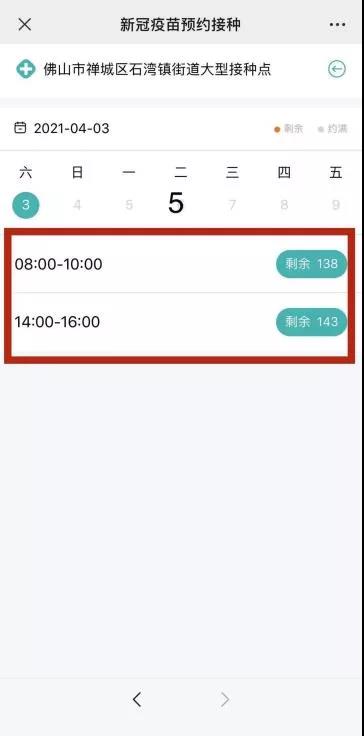 ② 如有预约号,代表有疫苗接种;如没放预约号,即代表暂时缺苗,请密切留意“佛山卫生健康”公众号放号情况。