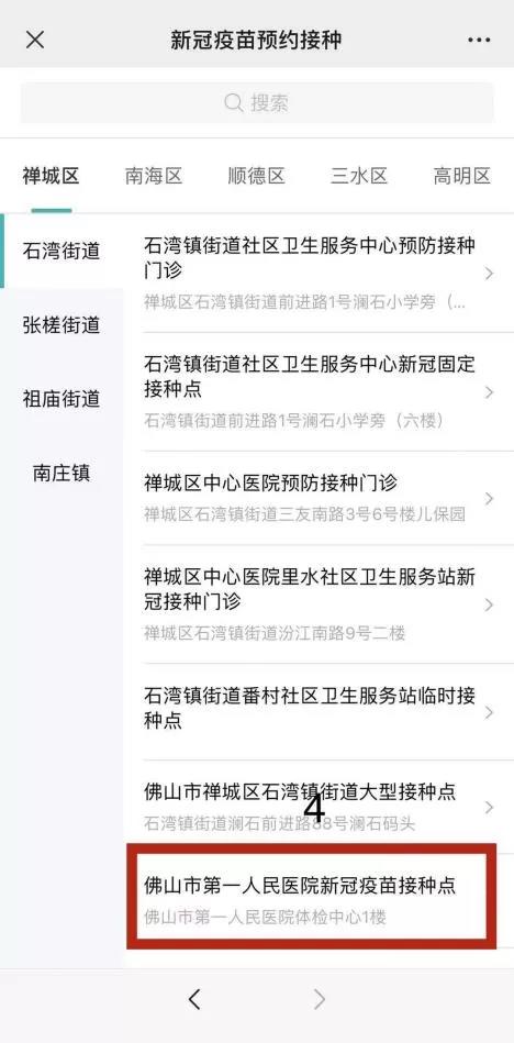 佛山市五区新冠疫苗接种预约指南入口链接(点击进去):