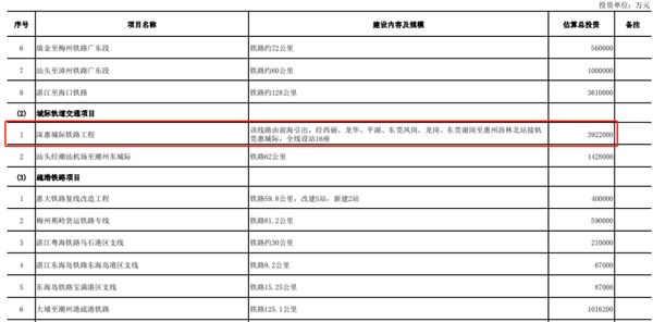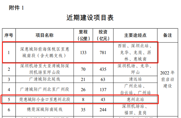 另一条城际铁路——深惠城际,根据去年国家发改委批复文件,已被列为近期建设项目,2022年前启动建设。
