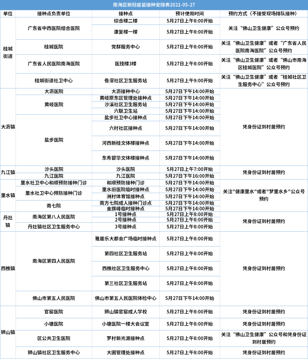 注:三水区专门设立了16个疫苗接种点负责本次大规模人群疫苗接种,其中11个接种点已可对外服务,其他5个将在3月31日前建成对外服务。