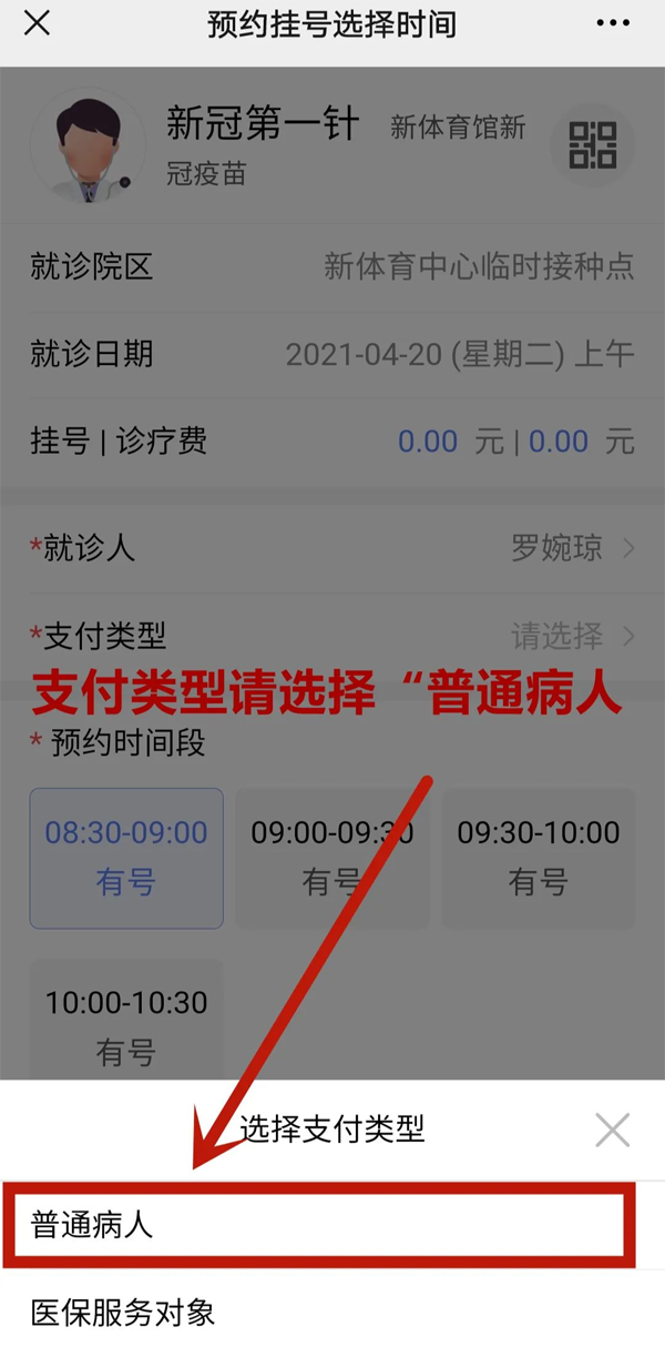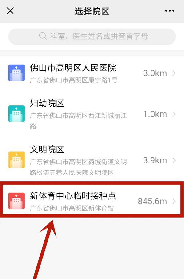 进入预约挂号界面,选择“新体育中心临时接种点”