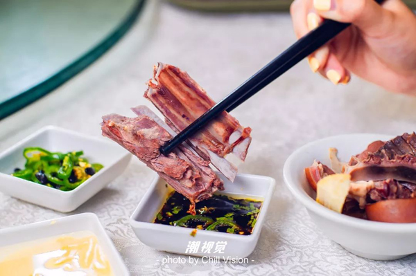 羊肉宴必点的当属羊腩!肥瘦相间的羊腩,看上去就很有食欲。一咬下去,皮肉分离,皮不会韧,味道鲜甜。