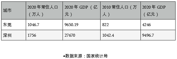 看得见的数据,是东莞人口站在了深圳曾经的位置。看不见的数据,是东莞的产业,和10年前的深圳一样快速崛起。