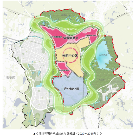 华为也沿线迁徙,带动着大量电子通讯上下游企业向北布局松山湖。光明科学城99平方公里,北区定位装置集聚区,除中山大学深圳校区外,集中布局重大科技基础设施、科研机构、前沿交叉研究平台、高水平大学等。