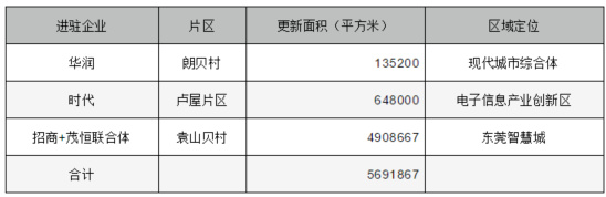 2019年,招商、华润、时代宣布进入常平,针对超过1万亩,大约5691867平方米的城市空间进行更新升级,相当于8.32个华润大冲,12.38个白石洲。
