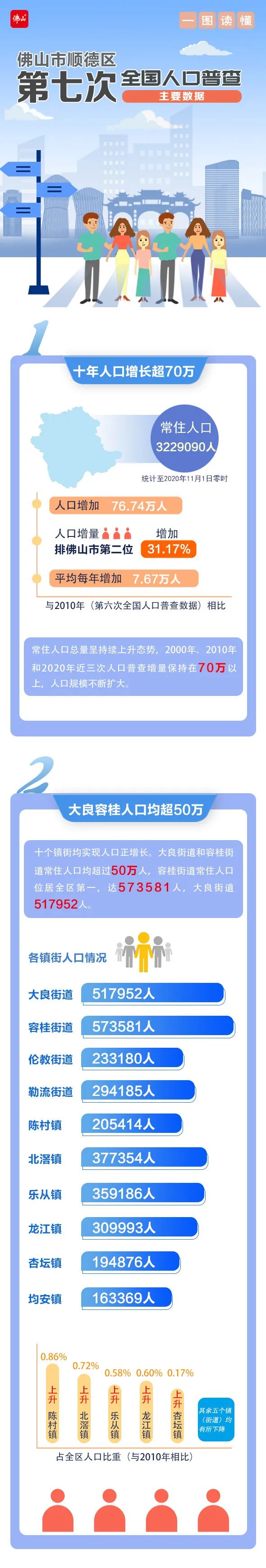顺德现在常住人口有多少人?男女比例是多少?哪个镇人口最多?......赶紧来一图读懂顺德区第七次全国人口普查数据↓↓↓