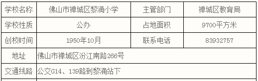 黎涌小学位于禅城区汾江南路266号,黎涌乡上下村之间,距离广佛地铁澜石站500米左右,交通方便。