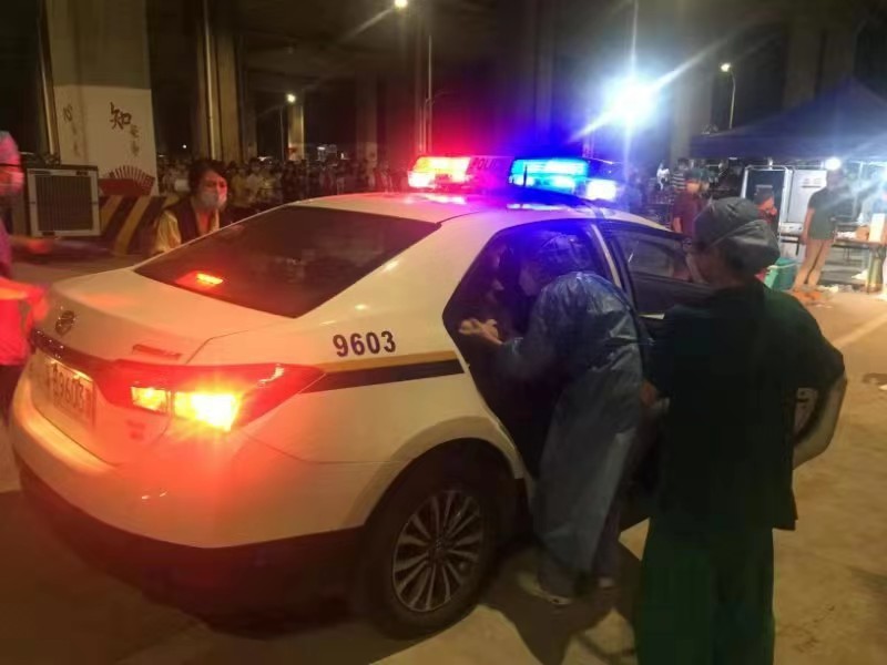 5月28日晚11时许,正在顺德陈村碧桂花城核酸检测点执勤的民警卢学标接到了医务人员求助:有一名正在进行核酸检测工作的护士中暑晕倒了,需要立即送往医院急救。