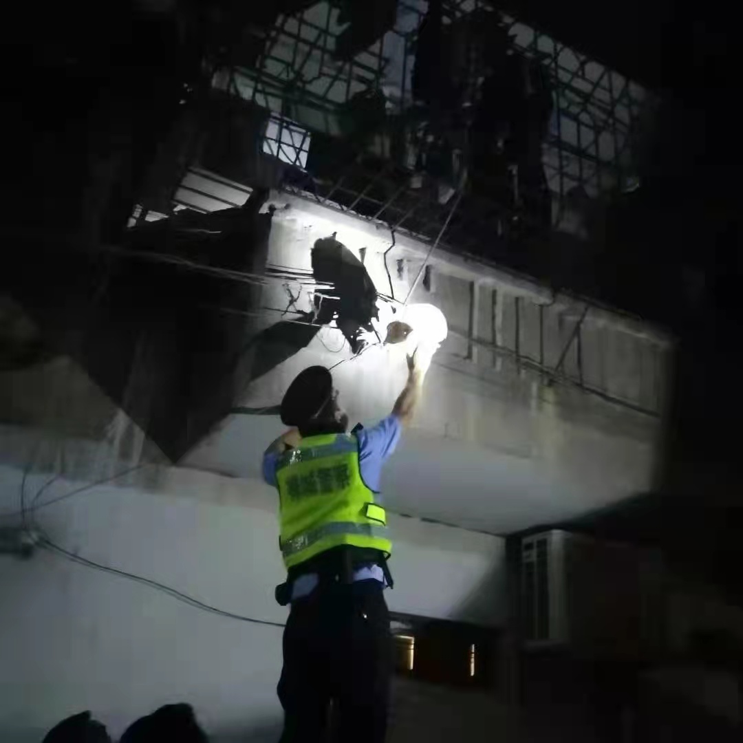 5月28日晚,禅城公安祖庙派出所民警杨荣为群众换上更亮的灯泡。/佛山市公安局供图
