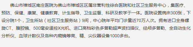 医院地址: 广东省佛山市禅城区南庄镇解放路9号