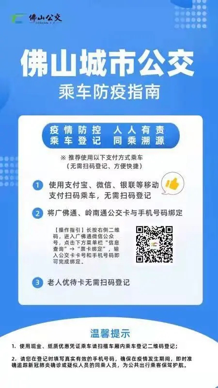 ▶为共同做好疫情防控工作,有效阻断疫情传播扩散,南海区交通运输局呼吁广大市民乘坐公交应主动扫码登记。同时,请各位市民在乘坐公共交通工具时,做好个人防护措施。