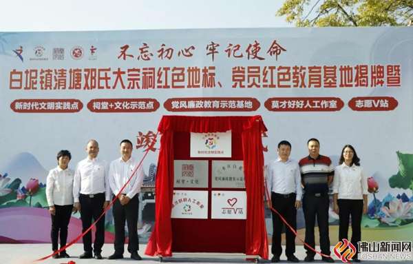 今日上午(11月8日),白坭镇举行“不忘初心,牢记使命”清塘邓氏大宗祠红色地标、党员教育基地揭幕暨竣工开放仪式,邓氏大宗祠结合三水区白坭镇新时代文明实践点、“祠堂+文化”示范点、党风廉政教育示范基地、莫才好好人工作室、志愿V站,将进一步推动宣传思想文化工作和精神文明建设向农村基层延伸。