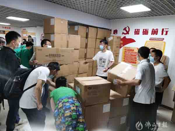 荷城街道调集了一批防疫物资,前往南海区桂城街道平洲片区。