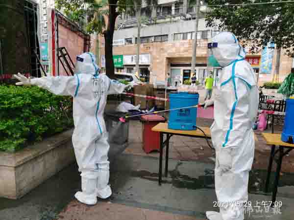 5月28日下午4时,在接到高明区疫情防控指挥部办公室医疗救治组发来的支援通知后,高明区荷城街道办立即组织街道各办(所)、村(居)共抽调96人参与本次支援行动,于28日下午6时集结完毕,并调集一批防疫物资前往南海区桂城街道平洲片区。