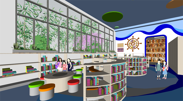 图书馆首层是一个阅读、交流、小型活动课程于一体的多元学习中心 (图书馆效果图)