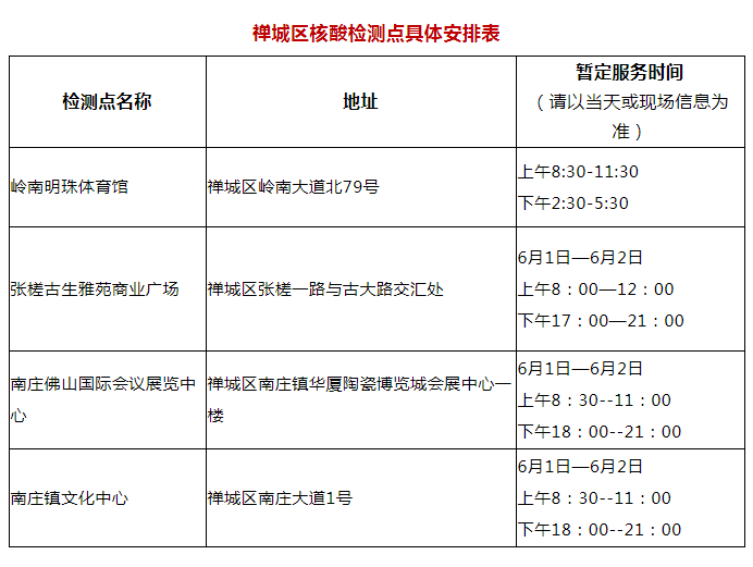 禅城区4个核酸检测点服务时间公布!
