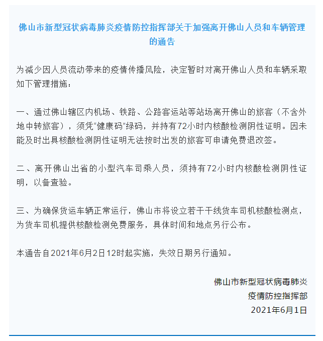 疫情防控热点解读,离开佛山人员和车辆管理