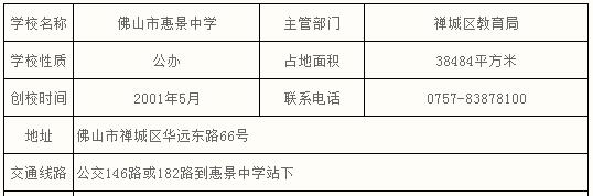 佛山市惠景中学是一所环境优美,充满活力,办学绩效优良,蕴藏着无限发展潜力的市一级全日制初级公办学校。学校高扬“精致办学,儒雅育人”的办学理念,坚持“依法治校 管理强校 质量立校 特色优校”的办学思路,以提高育人质量为核心,同心同德、开拓进取,走内涵特色化发展道路,学校已成为一所社会赞誉、领导肯定、家长青睐、学生喜爱的优质品牌初中。