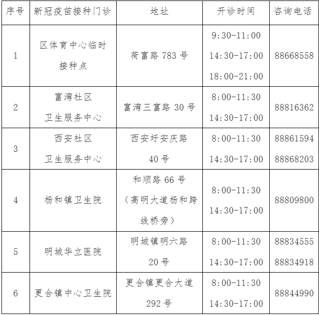 根据工作安排,6月3日区内新冠疫苗接种门诊开诊信息如下。请市民(18-59岁)先到“户籍所在地或者居住地的村(居)委会”预约并领取凭证,然后持“预约凭证”以及“身份证原件”前往接种门诊进行接种。区疫情防控咨询电话:88660209。