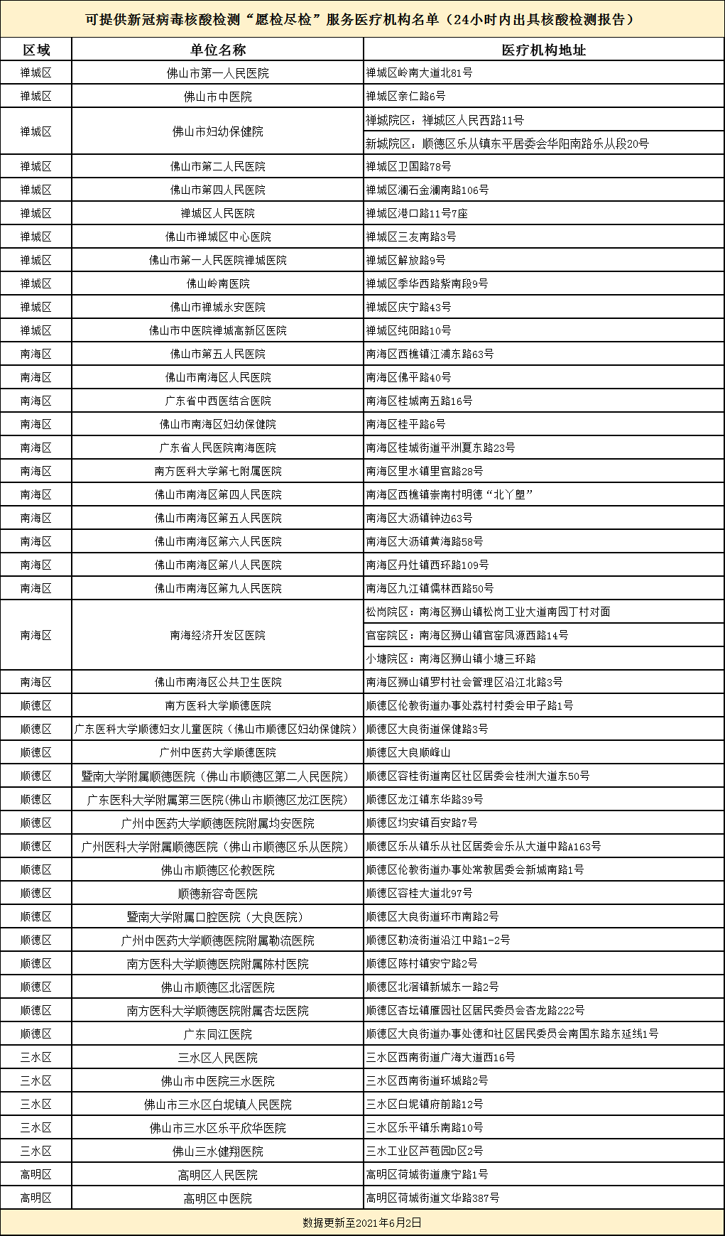 为保障疫情防控工作的需求,没有特殊紧急情况的“愿检尽检”人员,指定医疗机构(名单附后,共46家)核酸检测结果将于24小时内出具,请市民在出行前合理安排时间。