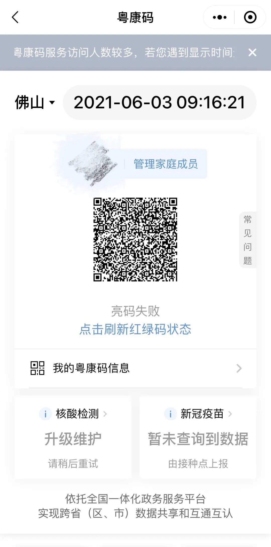 目前有部分市民未能刷新红绿码状态