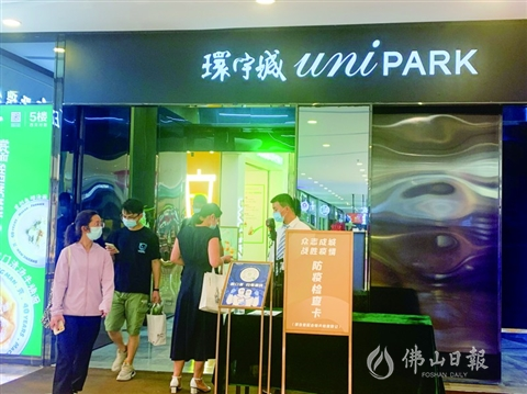 进入南海桂城中海环宇城需测温和亮码。/佛山日报记者黎俏婷摄