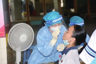 ■南海中学高三学子进行核酸检测。