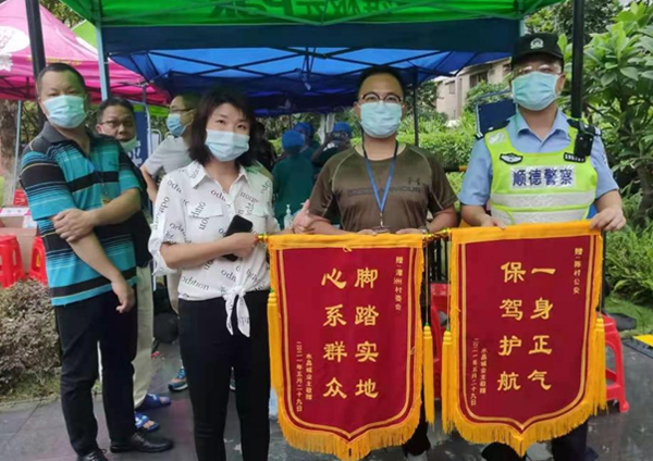 自广佛疫情启动风险等级防控以来,陈村派出所切实发挥职能作用,全警动员、加班加点、冲锋在前,主动担起万科水晶城、星英半岛、碧桂花城等小(社)区全员核酸检测安保工作,扎实做好防风险、护安全、保稳定等各项工作,全力保障了现场秩序和群众生命健康安全。一线民警、辅警不怕危难、不分昼夜、不畏酷暑的精神感动了小区业主,于是出现了送锦旗感人一幕。