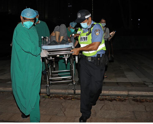 5月29日21时许,乐从派出所大墩社区民警中队民警陈广志在佛山新城市民广场核酸检测点安保执勤时,一位女士急匆匆赶来求助,她62岁的老母亲刚刚不小心摔倒受伤,起不来,陈广志获悉情况后马上和同事赶到现场,只见老人蜷缩坐在地上不停地喊“疼”,陈广志马上拨打120,并不断安抚老人和女士的情绪,待救护车到后,陈广志和同事合力将老人抬上车,确认老人无大碍后才放心回到岗位。